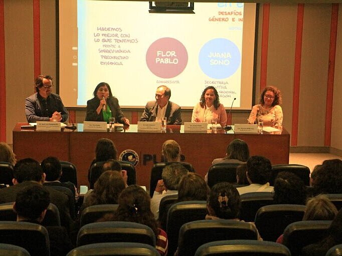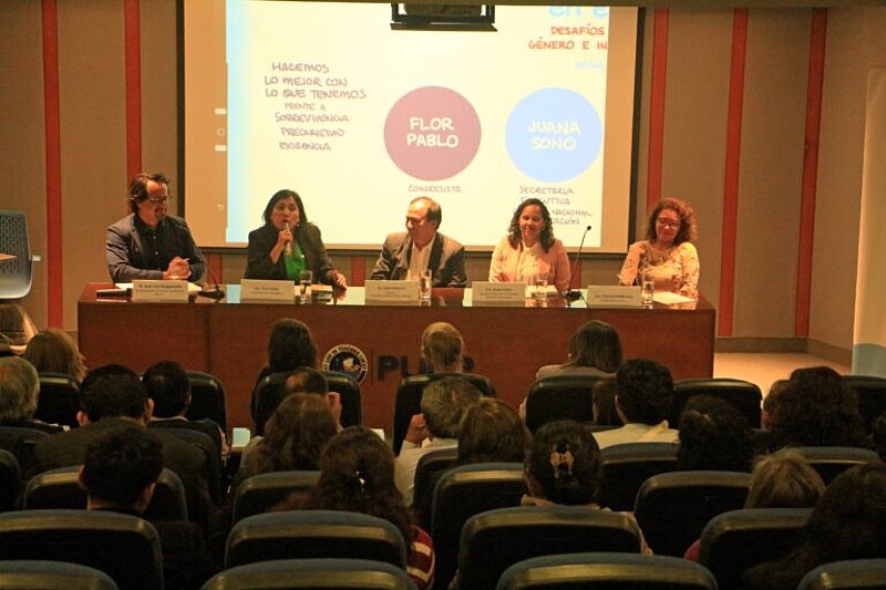En el segundo panel, compuesto por especialistas, funcionarios y gestores públicos, se abordaron los desafíos que enfrenta la EPJA desde una perspectiva de género e interculturalidad, así como el papel del Estado para afrontar estos problemas. En este panel participaron Flor Pablo, Congresista de la República; Juana Sono, secretaria ejecutiva del Consejo Nacional de Educación; Luis Vásquez, director de la Dirección de Educación Básica Alternativa del Ministerio de Educación; y Patricia Balbuena, ex Ministra de Cultura y experta en género e interculturalidad. Los panelistas intercambiaron experiencias y perspectivas sobre cómo el Estado puede reducir las brechas sociales y educativas, teniendo en cuenta ambos enfoques fundamentales.