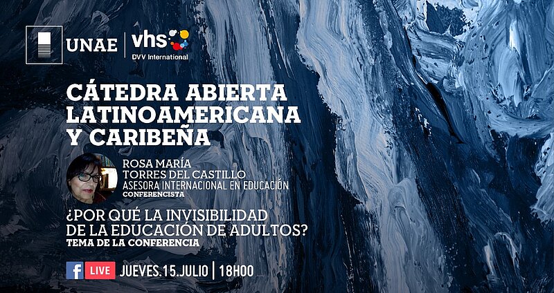 La Universidad Nacional de Educación UNAE y DVV International realizan la más cordial invitación a participar de la Conferencia Magistral denominada: ¿Por qué la invisibilidad de la educación de adultos? a cargo de Rosa María Torres, que se llevará a cabo el día jueves 15 de julio de 2021, a las 18h00 (hora Quito, Lima, Bogotá), a través del Facebook Live de la Universidad Nacional de Educación UNAE.