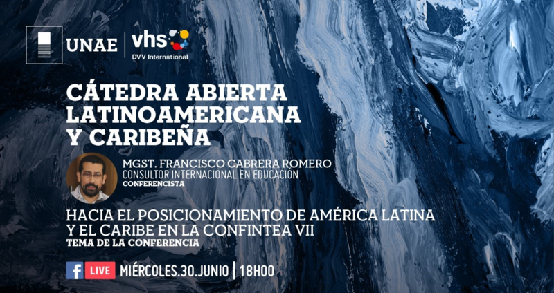 En este sentido, la Universidad Nacional de Educación UNAE y la DVV International realizan la cordial invitación a participar de la sexta conferencia magistral denominada: “Hacia el posicionamiento de América Latina y el Caribe en la CONFINTEA VII” a cargo del Mgtr. Francisco Cabrera Romero, que se llevará a cabo el día 30 de junio de 2021, a las 18H00 (hora Ecuador), mediante el Facebook Live de la Universidad Nacional de Educación UNAE: https://t.co/oz4dUM1g8X
