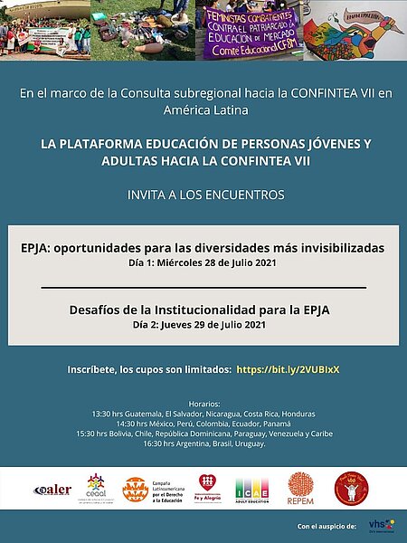 La plataforma por la Educación de Persona Jóvenes y Adultas (EPJA) hacia la CONFINTEA, invita a sus encuentros paralelos en el marco de la Consulta subregional de Educación para Jóvenes y Adultos