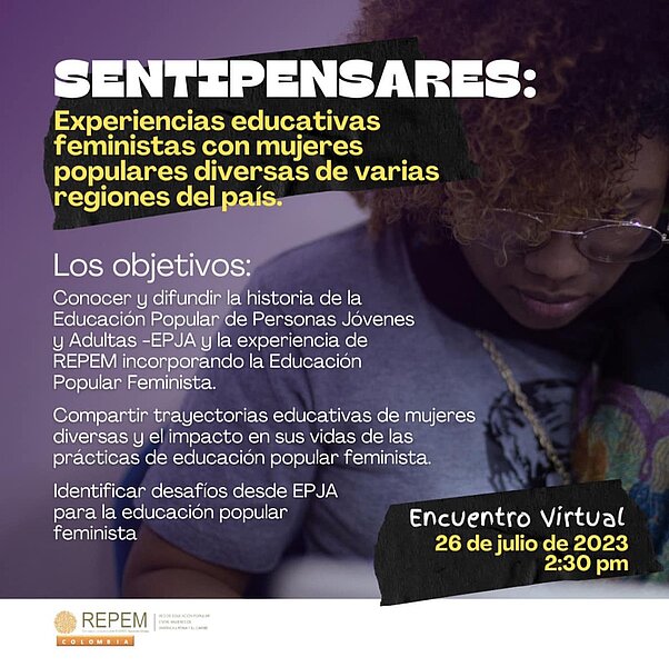 La Red de Educación Popular entre Mujeres de Latinoamérica y El Caribe (REPEM LAC) convoca al conversatorio "Sentipensares: Experiencias educativas feministas con mujeres populares diversas" que se realizará hoy, 26 de julio de 2023, a las 14:30, a través de la plataforma Google Meet, en este enlace.