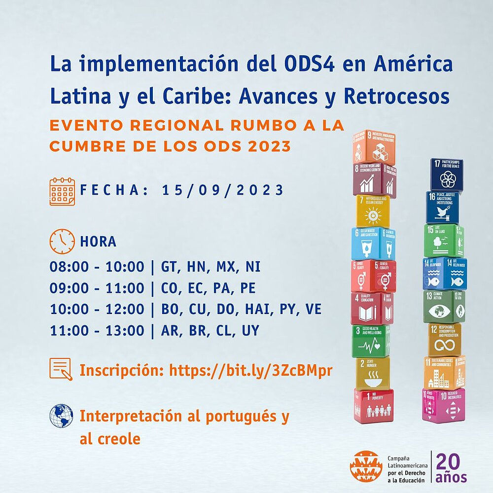 La CLADE convoca al evento virtual: "La implementación del ODS4 en América Latina y el Caribe: Avances y Retrocesos". El conversatorio se realizará el 15 de septiembre de 2023, de 08:00 a 10:00…